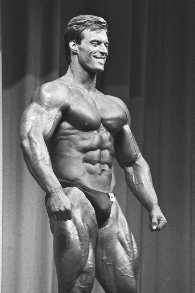Berry De Mey earned his first competitive victory at the 1980 Mr. Ironman in Holland, where the 17-year-old took the under-190-pound title. He put together his posing routine by arranging still photos from magazines and improvising from one pose to the next.