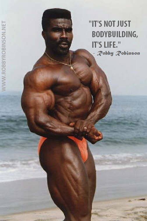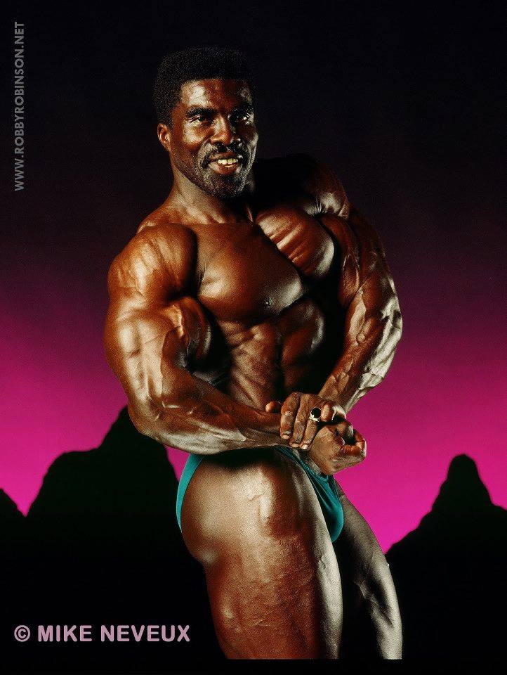 Robby learned early on that his body responded to weights and began bodybuilding in earnest while still a teenager, constructing his first set of weights from scrap metal salvaged from a sawmill. In spite of racial jeers and questionable judging, he competed in over 300 amateur events while attending art school and later working at the Tallahassee Democrat. Bodybuilding was his avocation until he got a letter in 1975 from Joe Weider, luring him to Venice, California.