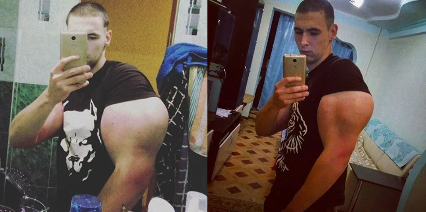 After being released from military service this 21-year-old start injected a site enhancement oil, widely known as Synthol, which increased the circumference of his arms by 26 centimeters in just 10 days.