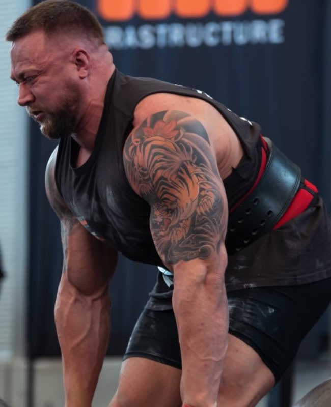 The trick with the deadlift event was that the competition used the Stone Bar implement, and challenged the athletes to perform as many reps as possible. Figure eight straps and deadlift suits were not allowed.