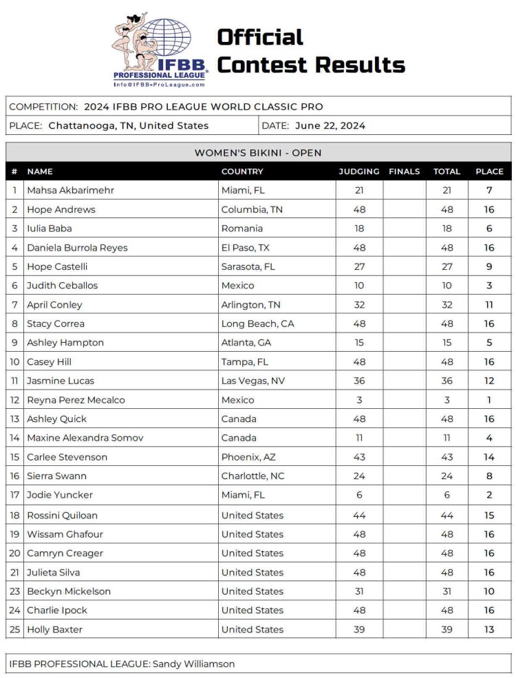 The 2024 World Classic Pro Bikini show delivered fireworks on Saturday, June 22. This IFBB Pro League-sanctioned event was a Bikini qualifier for the upcoming Mr. Olympia competition.