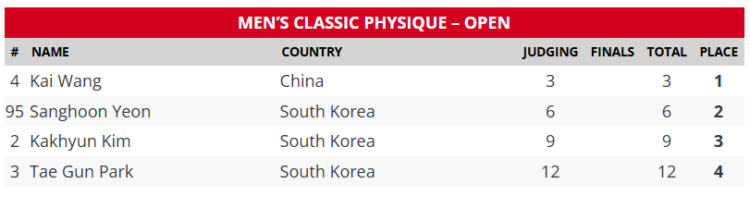 Classic Physique Results – 2025 World of Monsterzym Korea Pro