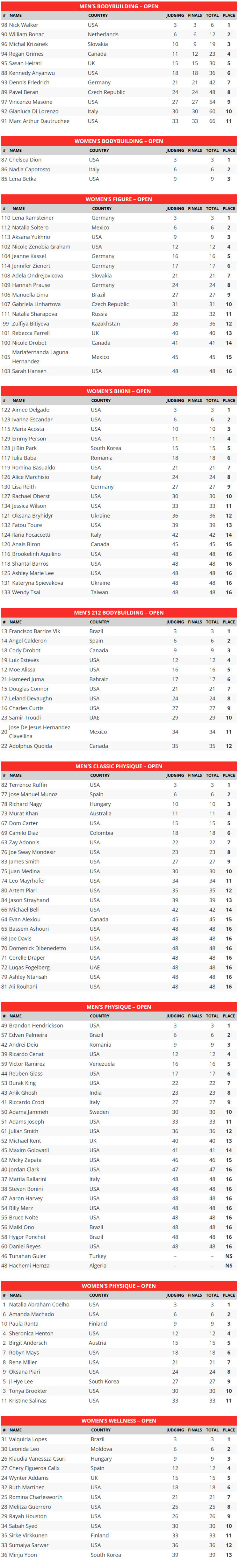 Terrence Ruffin continued his reign in Classic Physique, presenting flawless symmetry and a powerful posing routine. His first-place finish solidifies him as a top contender heading to the Olympia.