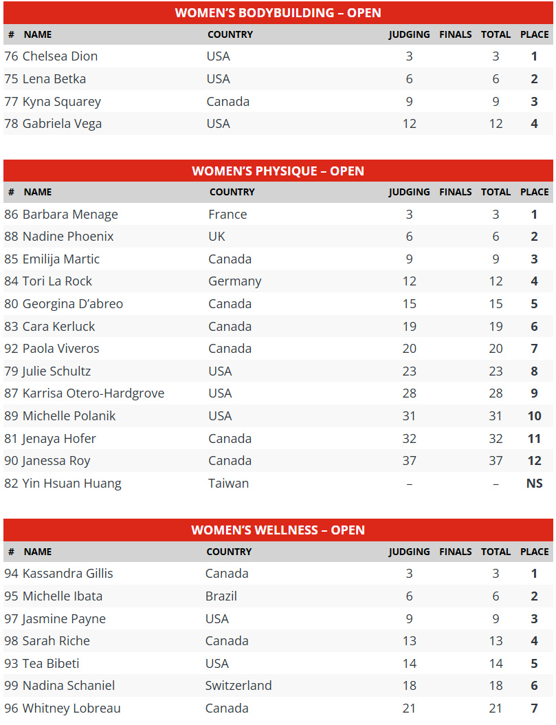 Chelsea Dion took a big step forward in her pro career, winning the Women’s Bodybuilding division with standout conditioning and muscularity. She held off Lena Betka and Kyna Squarey to secure her first Olympia qualification.