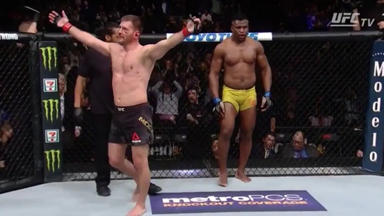 The fight started with fire, with both fighters landing powerful shots. Halfway through the first round Francis hurt Miocic hard and looked to pounce on his prey. It looked like the fight could be over within the first couple of minutes, but Stipe Miocic shrugged off the defeat and managed to take down Francis at the end of the round.