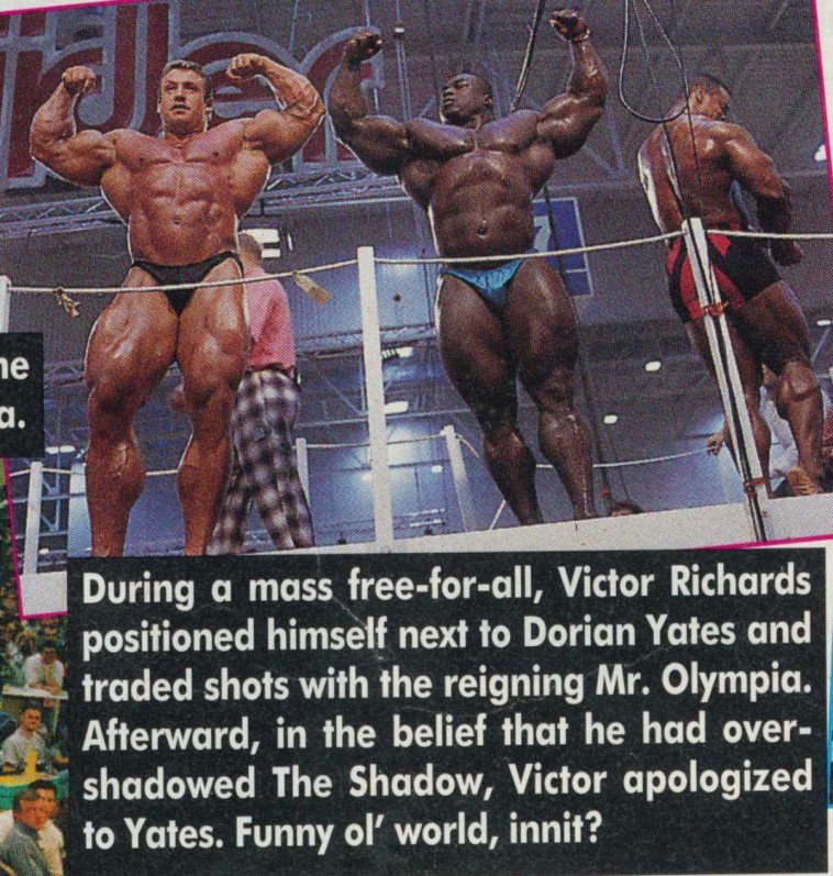 Richard never stood up for the competition in Mr. Olympia, so the actual comparison of his physique with other can’t be made precisely. But in 1994 at FIBO Essen, Germany, Richard posed with Dorian Yates, known to be the biggest bodybuilder of his time. And it was clearly evident that Richard had large legs than Yates.