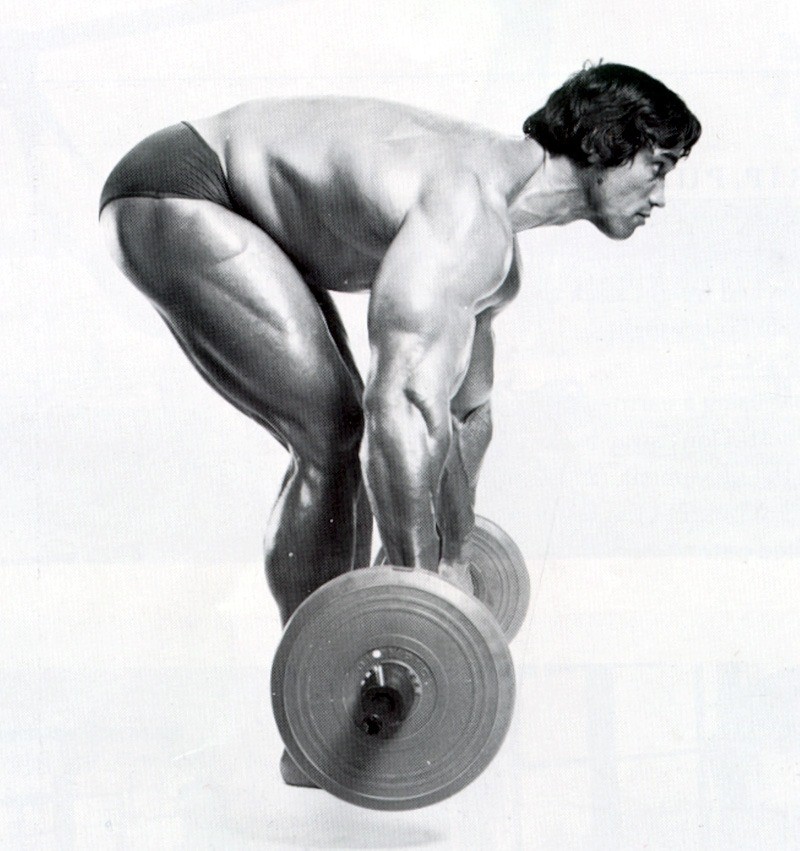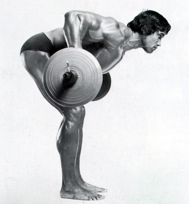 It is essential to incorporate vertical and horizontal pulling movements to build a wide and thick back. Bent over barbell rows and T-bar rows are Arnold Schwarzenegger’s go-to rowing exercises.