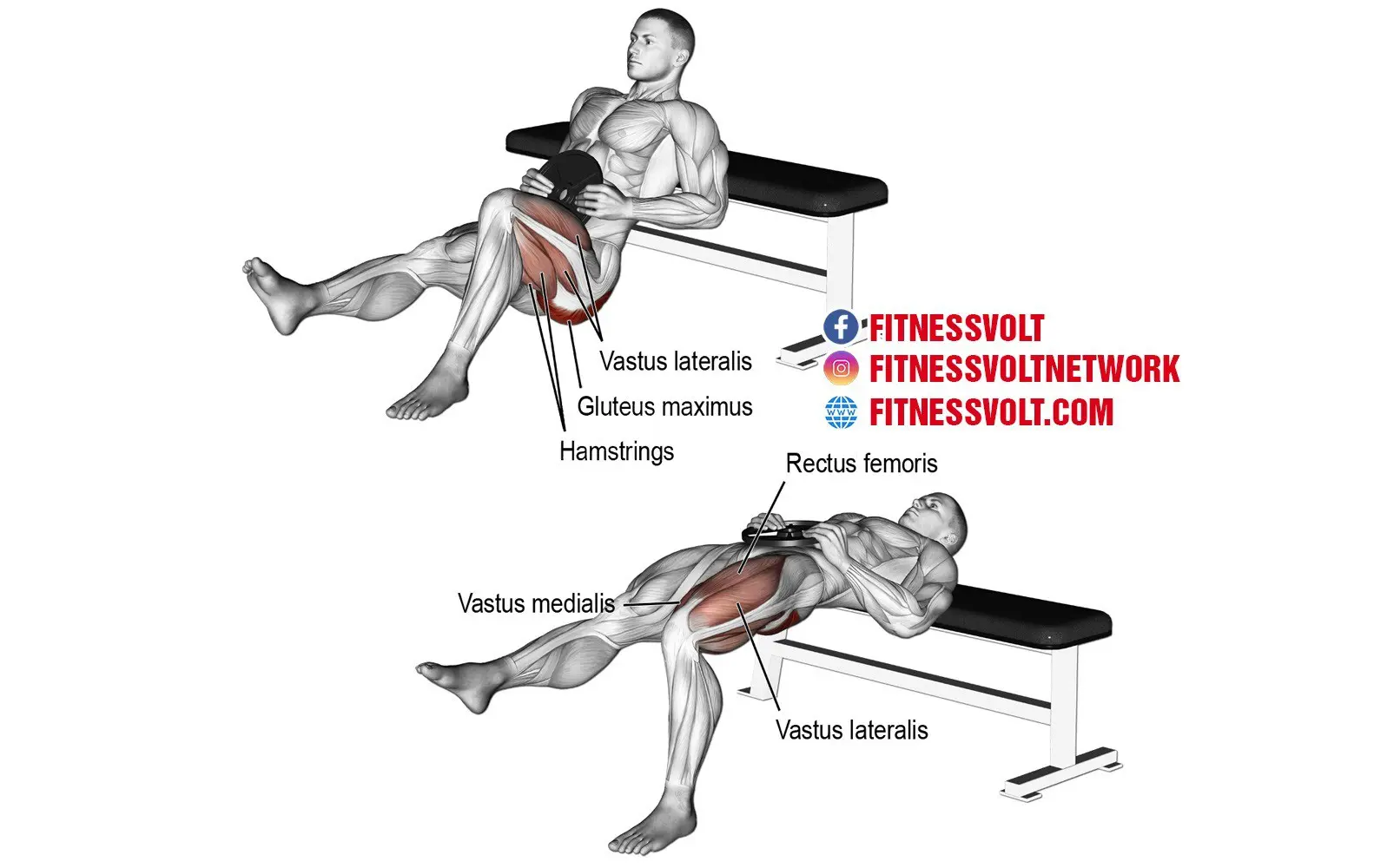 - The weighted one-leg hip thrust works the glutes but the quads, hamstrings, and calves receive stimulation as secondary movers during the exercise.