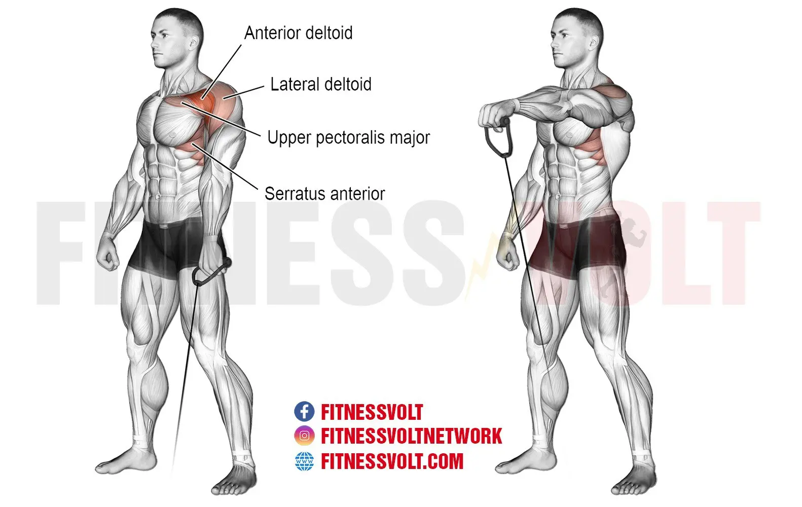 The cable one-arm front raise is a very effective front deltoid isolation exercise for building muscle and strength. Now, cables are a great tool when performing this exercise because they keep constant tension on the muscle and don’t require much stabilization which is beneficial when isolating a muscle.