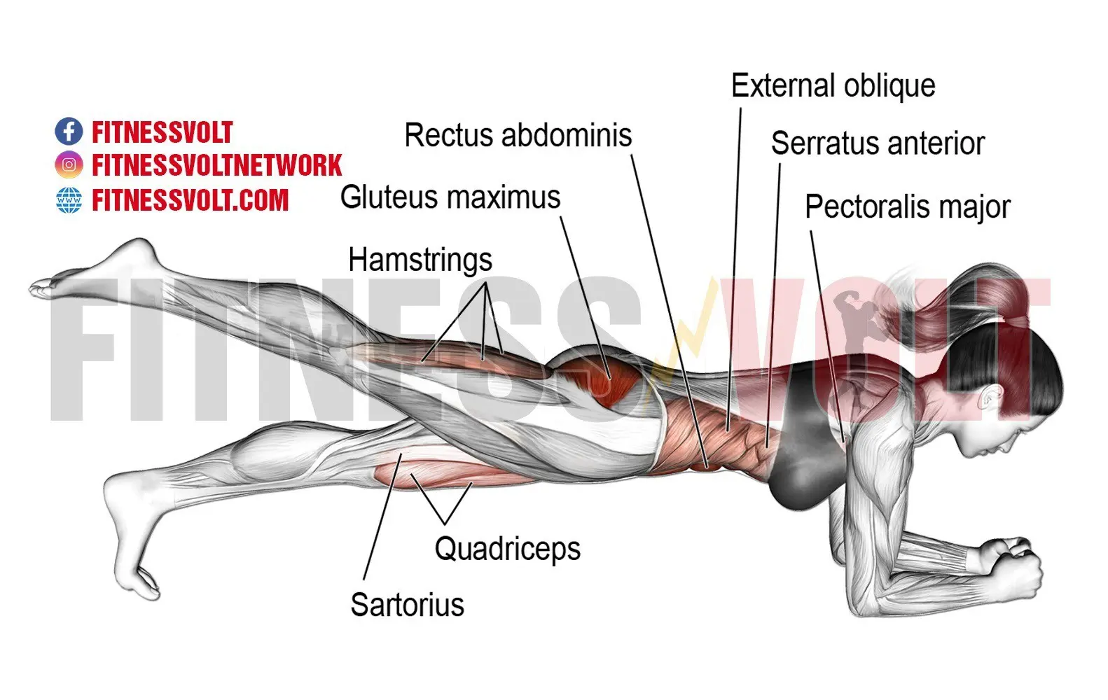 The one-leg front plank is an awesome core exercise which works your abdominals, obliques, and also your spinal erector muscles. They are one of the best exercises you can do for core strength and muscle building, so it’s recommended for everyone as a safe exercise.