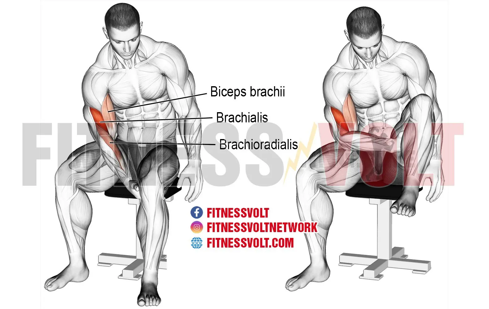 - You can use a neutral grip under your leg rather than a supinated grip to work the brachioradialis muscles.