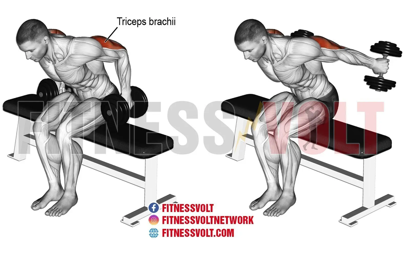 Seated Bent-over Two-arm Dumbbell Kickback: Maximize Triceps Development
