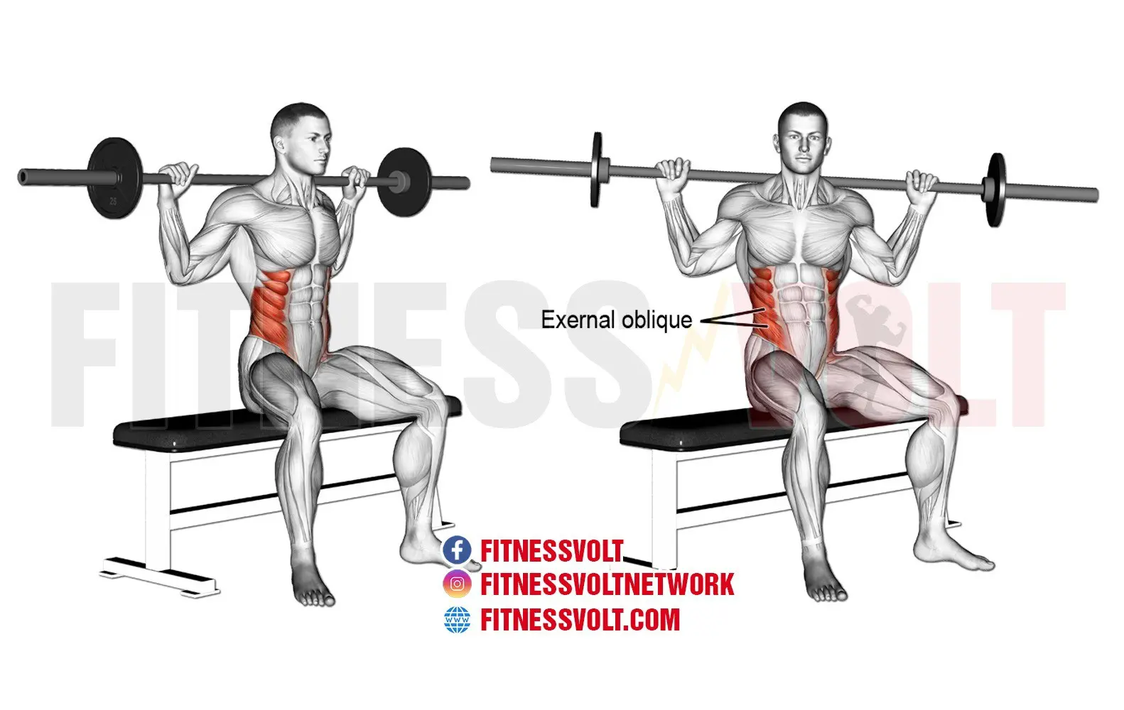 The seated barbell twist is a very functional exercise for the oblique muscles. It also slightly works the abdominal muscles and promotes core stability overall. Now, core stability is necessary to perform heavy compound lifts as it helps to balance and stabilize the resistance loads so that you can effectively perform the exercise.