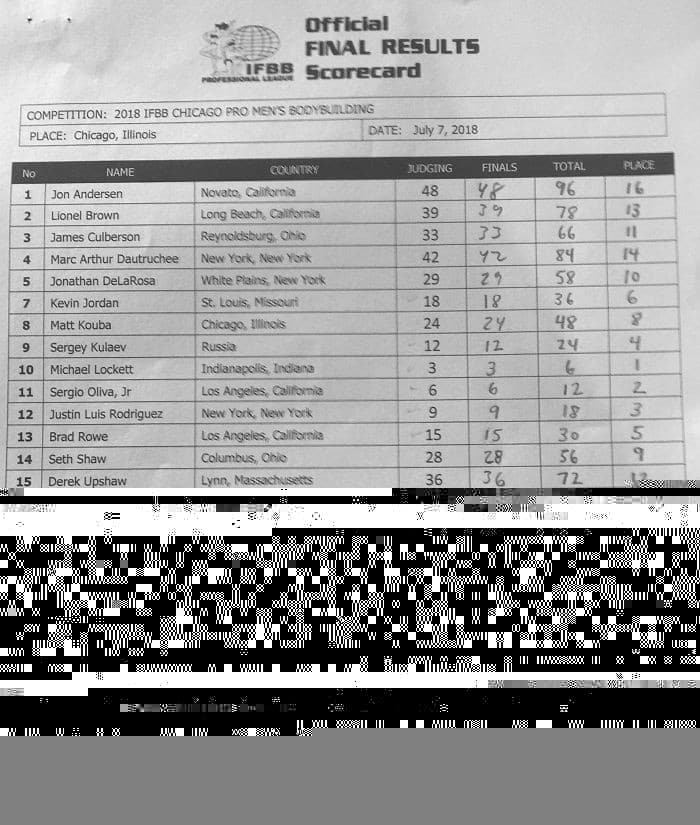 2018 Chicago Pro Scorecards