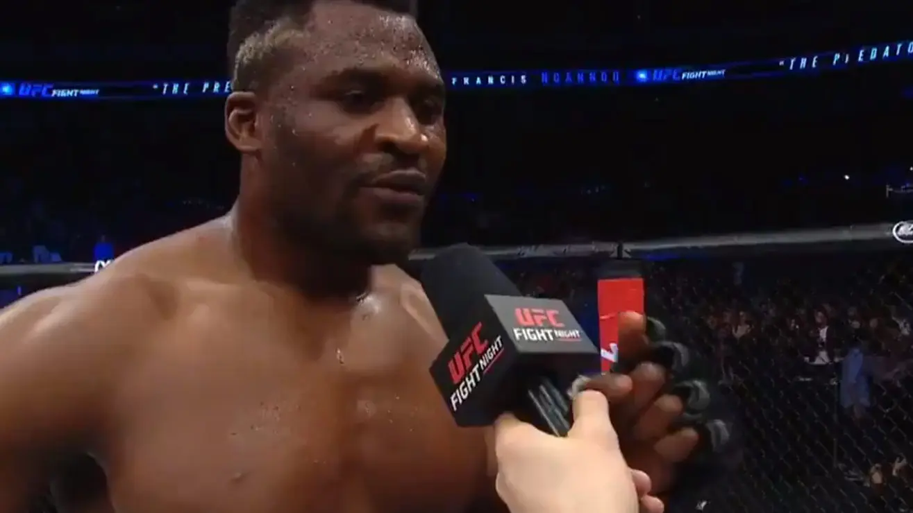 “It’s been a hard time, but listen man, I’m back,” Ngannou told Dan Hardy in his post-fight interview.