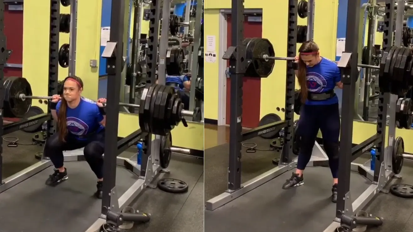 In June of 2018, Amanda Lawrence completed a squat of 496 pounds which is crazy, and then she went on to compete for a 526-pound squat in October of 2018 (Even crazier) which set an unofficial World Record.