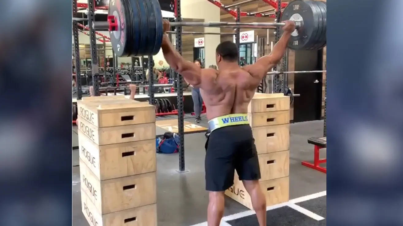 Watch him hit 500 pounds on the “Snatch Grip Push Press”…
