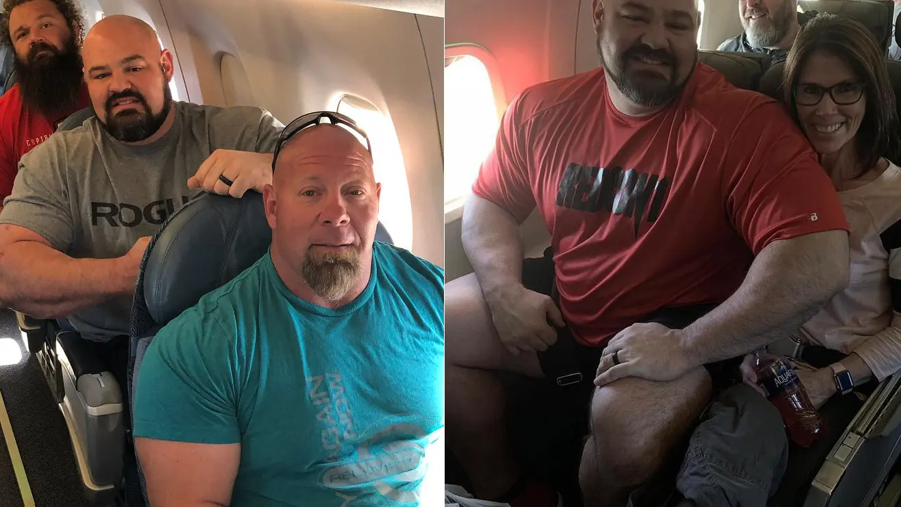 Most Strongmen and powerlifting competitors are extremely massive, so it’s no surprise doing average, daily activities would be a real challenge. Now, these athletes are always competing throughout the year and so travel is required to get them from one place to another.