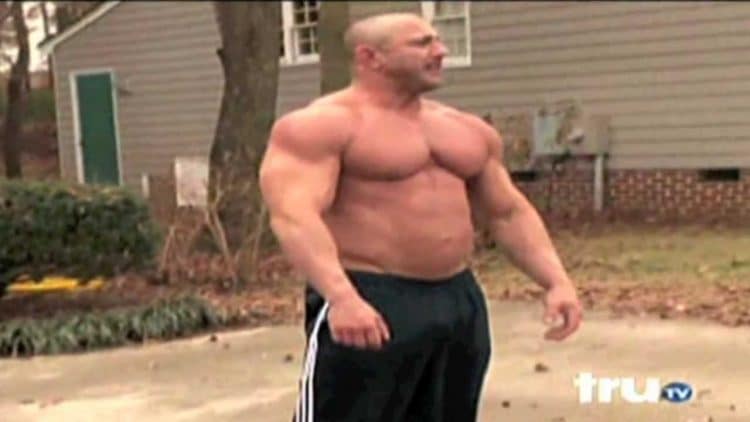 A huge ripped bodybuilder goes totally crazy when two guys tow his truck away. After the heated dispute, he drives it off the tow truck as it’s lifted in the air, the bodybuilder throws bricks at the back window of their car and shatters it. This bro is insane!