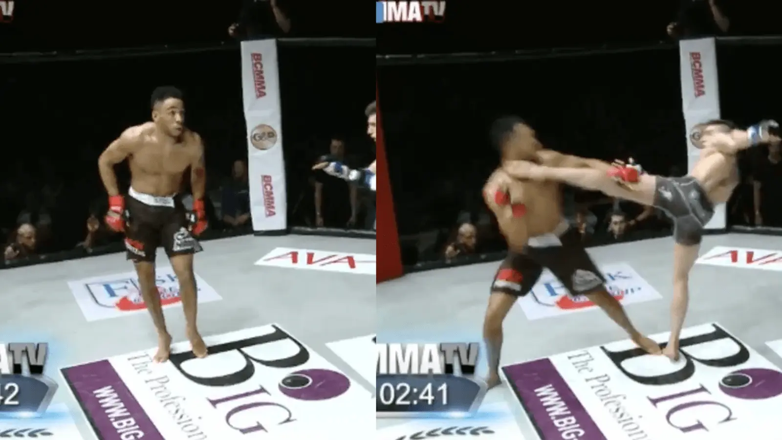 Let's just say dancing doesn't work in the cage! Boom what a head kick knockout here @BCMMAUK #ko #bcmma pic.twitter.com/vNkHkTz6YB