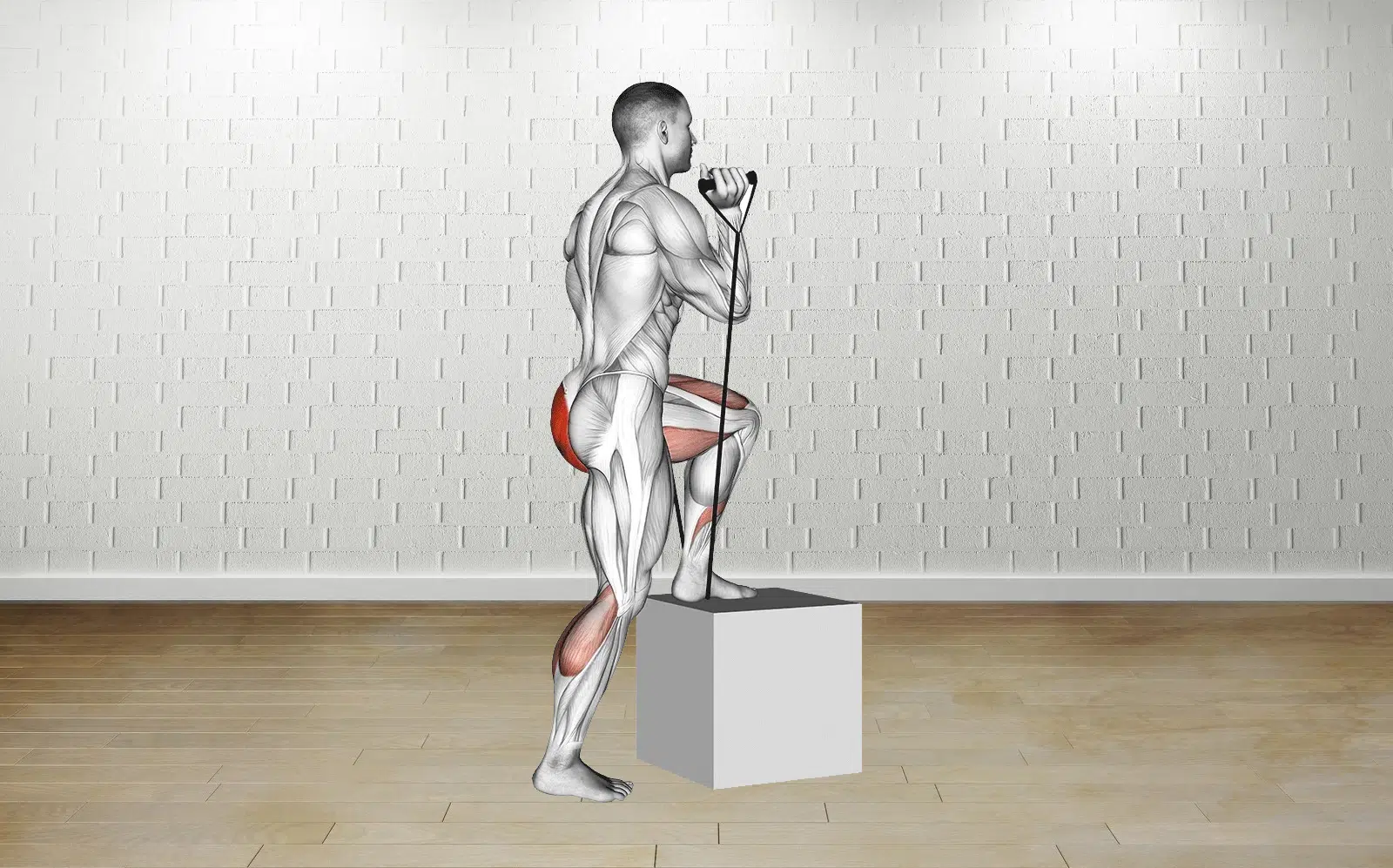 Band step-up exercises strengthen your lower body muscles through targeted resistance training. The exercise works your glutes while training your quadriceps, hamstrings, and calves. This movement builds muscle strength, improves body control, and increases balance. The band provides extra resistance, which increases muscle activation and makes each workout more effective.