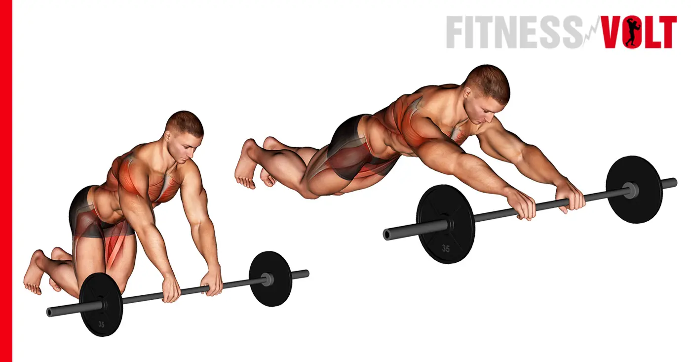 - Get into a kneeling position and grip the bar about shoulder-width.