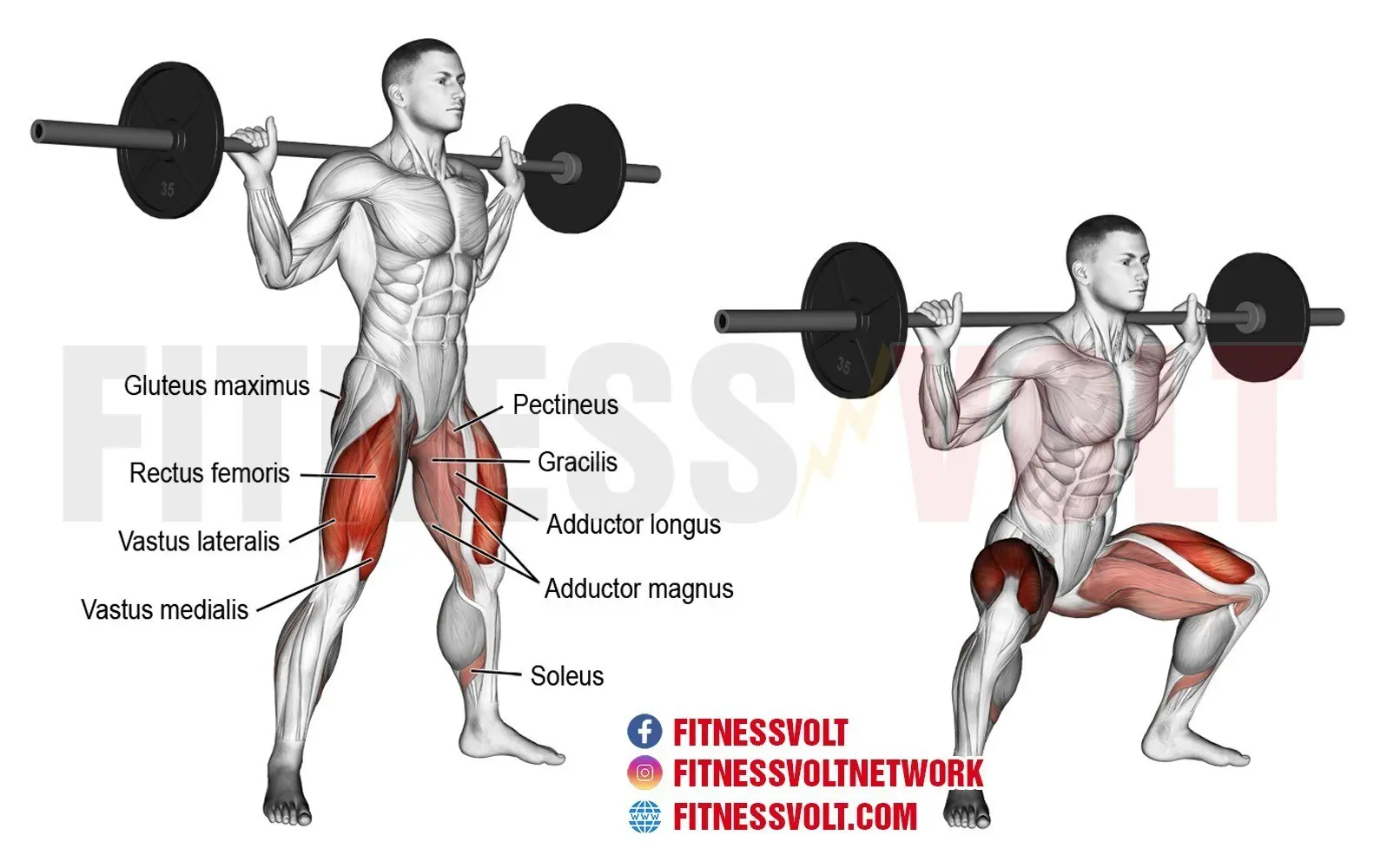 Any squat exercise will involve most muscles of the body. Below we’ve included details for each muscle worked during the barbell sumo squat.