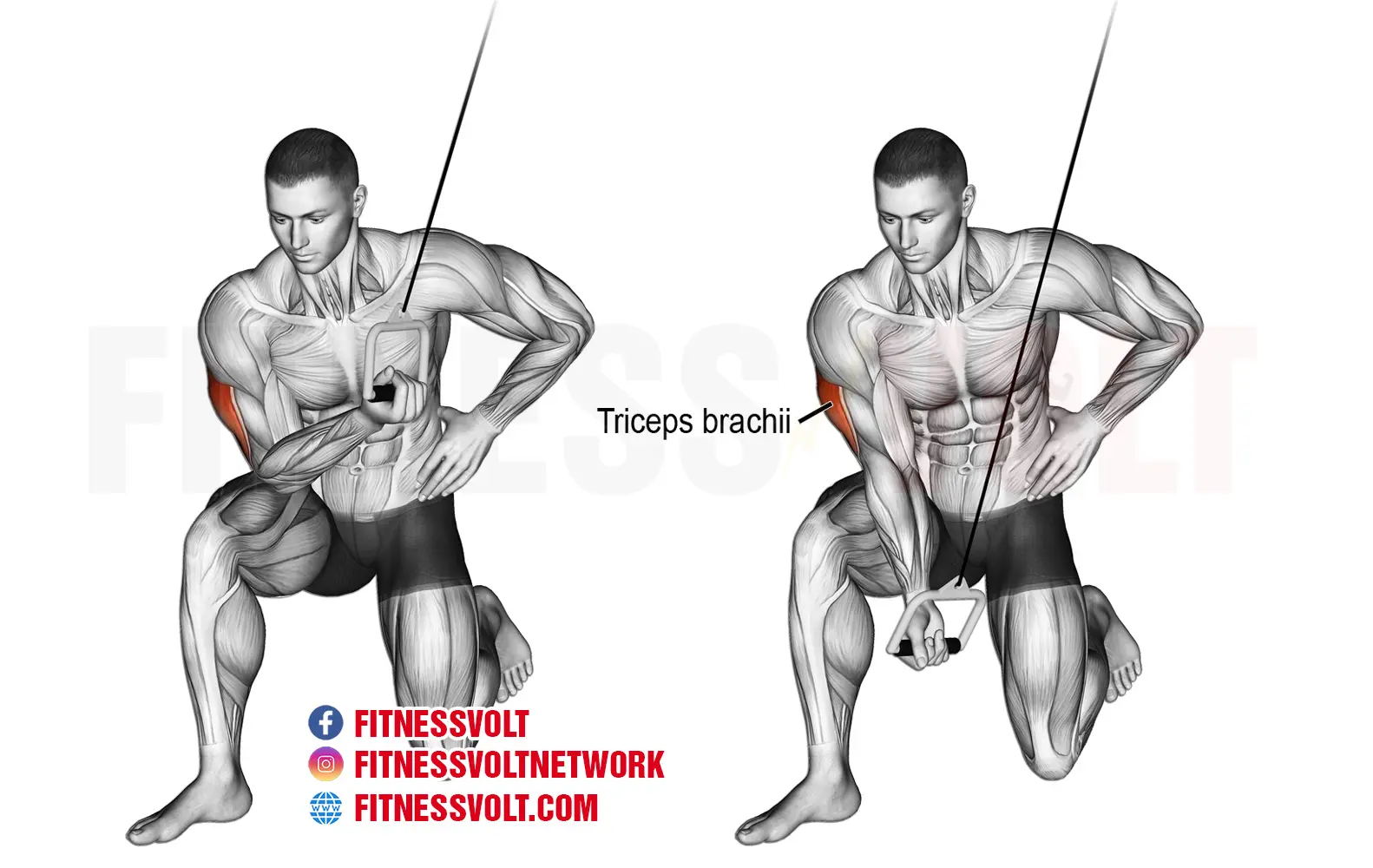 The cable concentration tricep extension is an isolation exercise which effectively targets the tricep muscles. Now, it’s not your typical Tricep exercise but it’s very beneficial for isolating the muscle for strength and muscle building purposes.