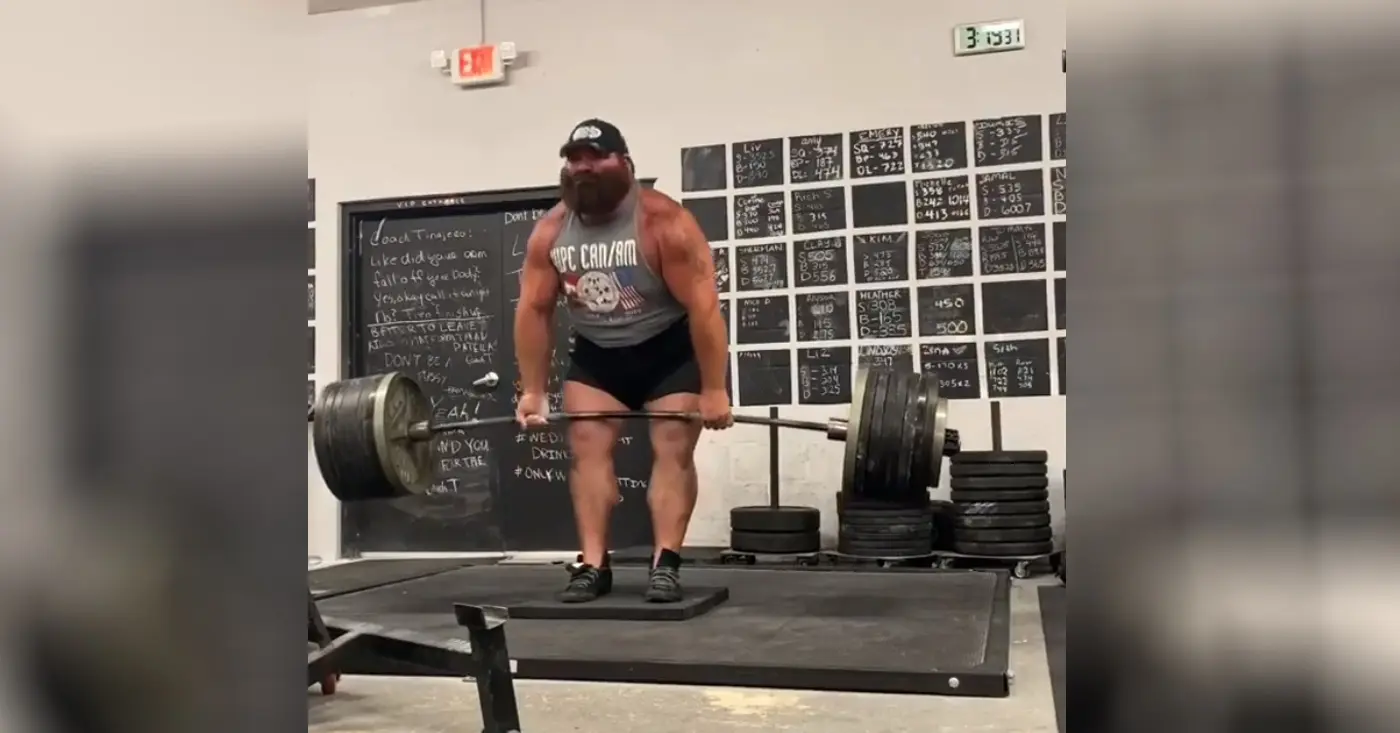 A few days ago, he did a deficit deadlift of 765lbs which you can see below…