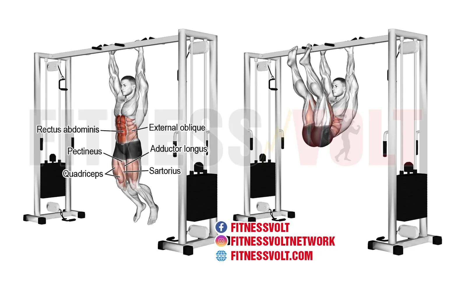 The hanging straight leg and hip raise is a compound exercise used for building size and strength in the abdominal muscles which make up a large portion of the core muscles. It’s a very effective movement for building core stabilization which is very necessary for essentially all physical movements.