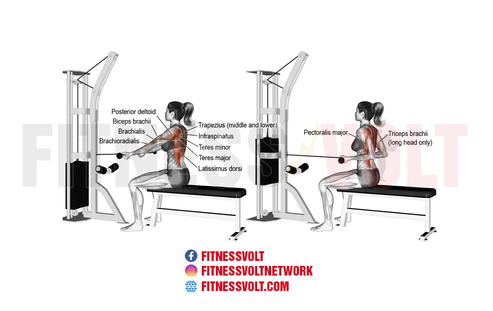 The straight-back underhand cable row is a back exercise which works the latissimus dorsi, trapezius, rhomboids, and Erector Spinae muscles which make up the upper posterior chain. Now, training with cables is very beneficial for keeping tension on the muscles which is optimal for muscle growth and strength. But, any form of a row is one of the best variations of a back exercise you can do as it works all the muscles pretty much equally.