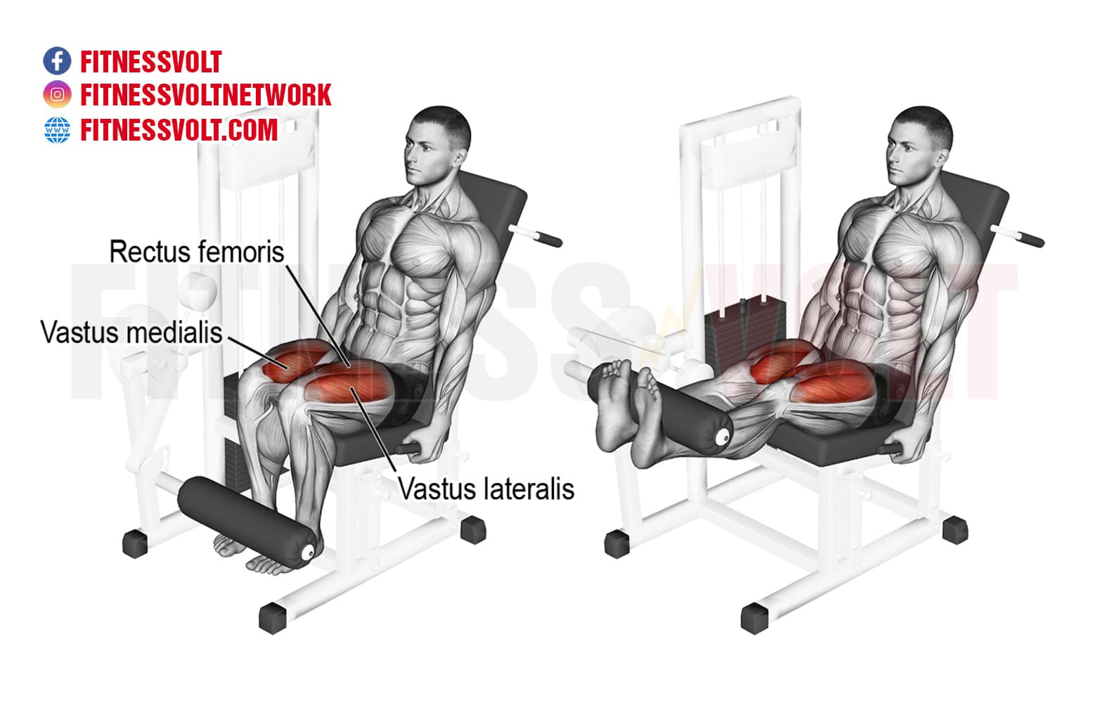 - Train the Leg Extension 2x per week with controlled tempo (3 seconds up, 3 seconds down).