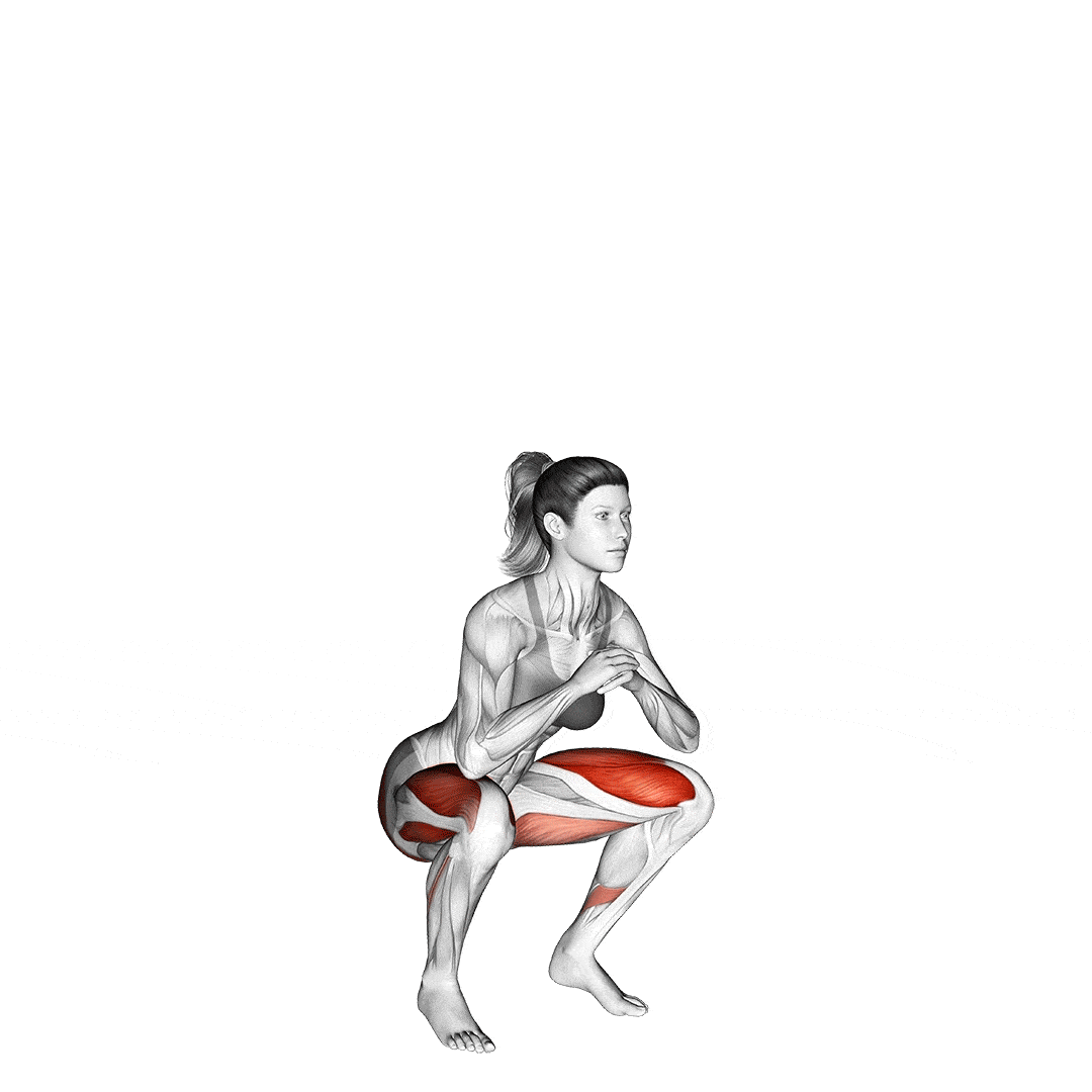 - Lower your body into a squat position by bending your knees and pushing your hips back, keeping your chest up and back straight.