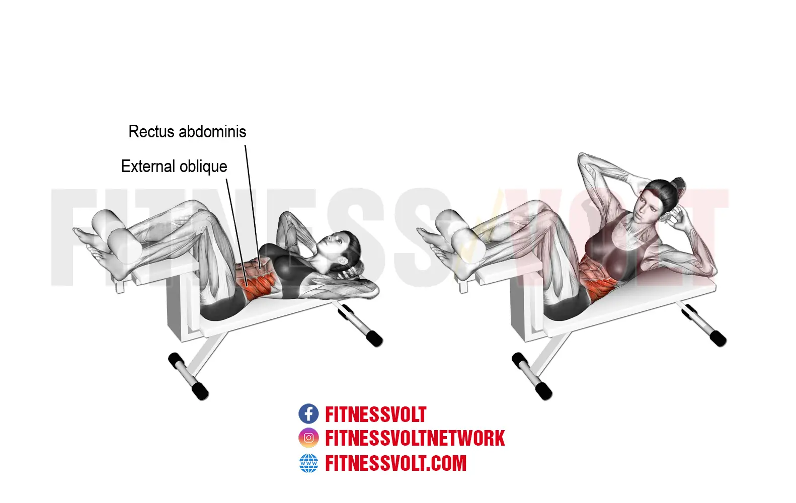 The twisting crunch is a simple, yet very effective exercise for the abdominal and oblique muscles which make up the core. You don’t need any equipment except a soft surface and a bench which is optional. So, it’s a very convenient movement you can do anywhere and still get gains!